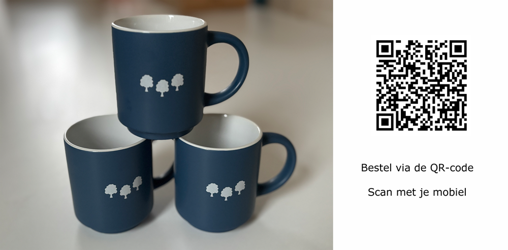 De mokjes zijn te bestellen door middel van bijgevoegde QR-code.